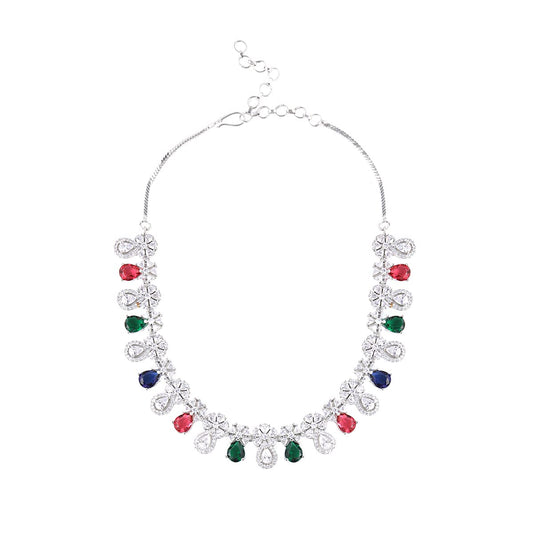 Jewellery Set for Womens Rhodium Plated AD/American Diamond Studded Multicolor Crystal Necklace Set with Earrings for Women and Girls