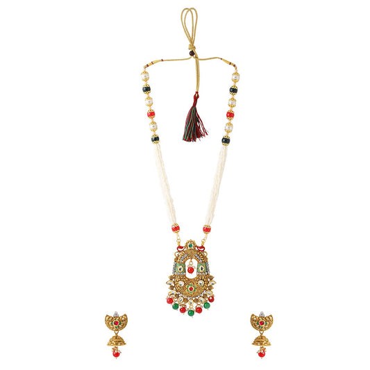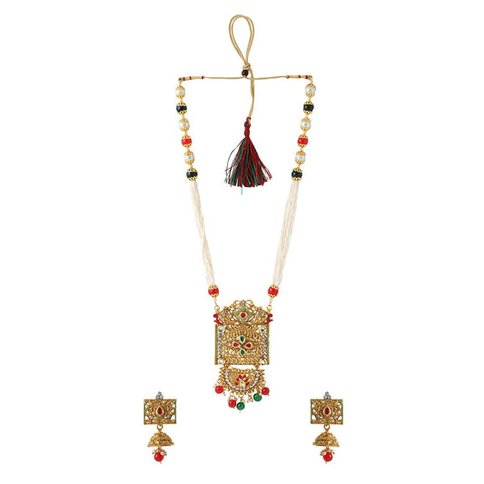 Jewellery Set For Women Long Kundan Beaded Charm Attached Necklace Set With Earrings For Women and Girls