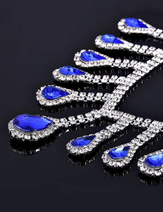 Jewellery Set For Women with Blue Stone Studded Classic Design Silver Plated White crystal Necklace Set for Women and Girls