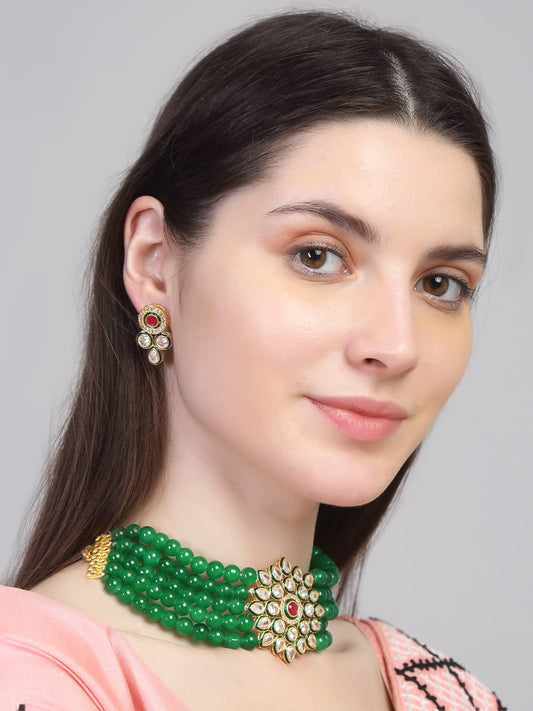 Jewellery Set for Women and Girls Kundan Necklace Set for Girls | Gold Plated Beads Beaded Kundan Choker Necklace Set | Birthday Gift for girls and women Anniversary Gift for Wife