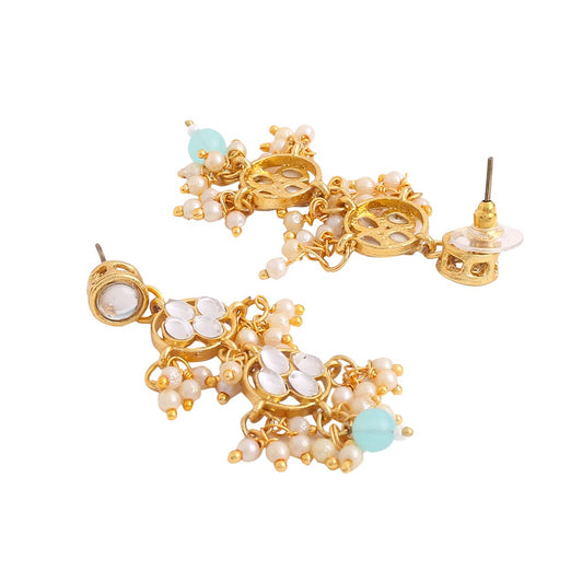Jewellery Set for Women and Girls Kundan Necklace Set Gold Plated Kundan Studded Blue Beads Drop Choker Necklace Set | Birthday Gift for girls and women Anniversary Gift for Wife