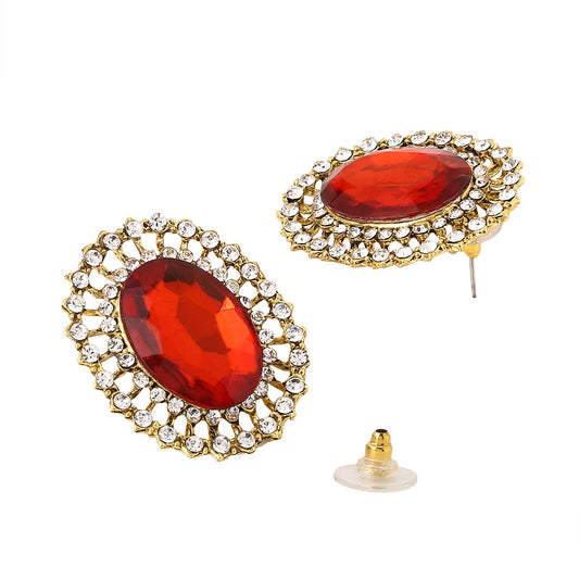 Jewellery Set for Women and Girls White Beads Necklace Set for Women | Gold Tone Red Crystal Choker Necklace Set | Birthday Gift for girls & women Anniversary Gift for Wife