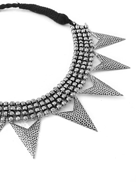 Oxidised jewellary set for girls and women Silver-Plated Necklace Set Geometric Triangular Design Modern Choker Necklace Set For Women & Girls