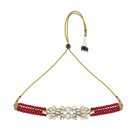 Jewellery Set for Women and Girls Kundan Necklace Set | Gold Plated Red Beads Studded Kundan Choker Necklace Set | Birthday Gift for girls and women Anniversary Gift for Wife