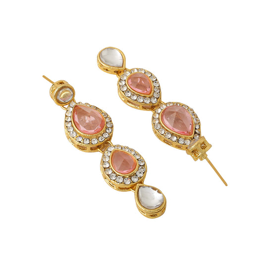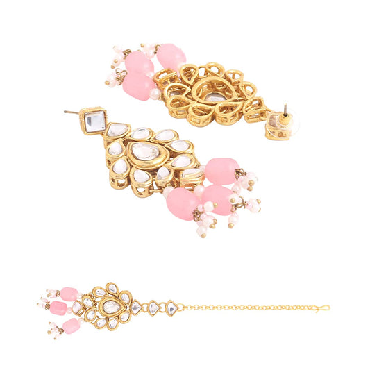 Jewellery Set for Women and Girls Kundan Necklace Set Gold Plated Kundan Studded Pink Beads Drop Necklace Set | Birthday Gift for girls and women Anniversary Gift for Wife
