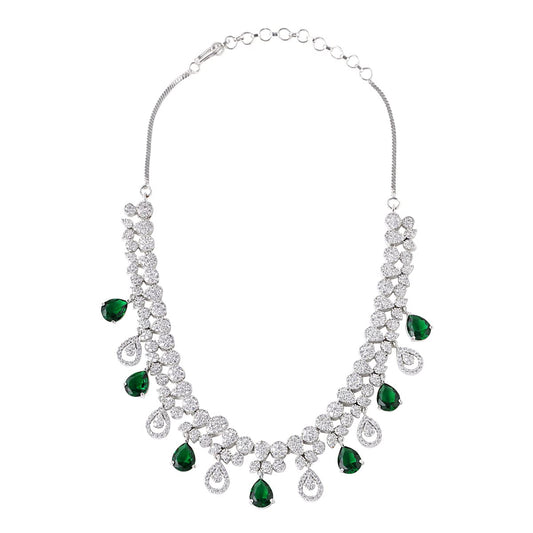 American Diamond Necklace Set For Women | Green Stone Silver Jewellery Set For Women | Diamond Necklace Set | Birthday Gift for Girls Anniversary Gift for Wife