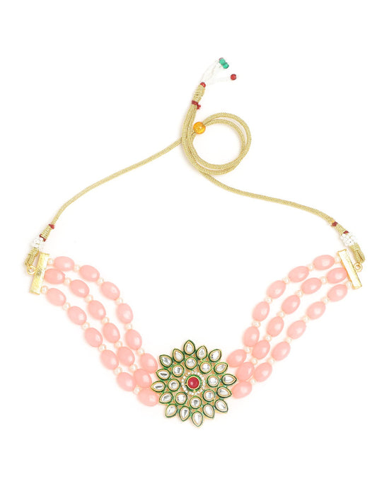 Kundan Jewellery Set for Women Pink Beads Necklace Set Gold Plated Traditional Choker Necklace Set for Women and Girls.