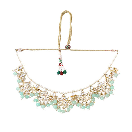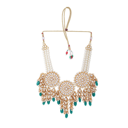 Jewellery Set for Women and Girls Kundans Necklace Set | Gold Plated Kundan Choker Green Beads Drop Necklace Set | Birthday Gift for girls and women Anniversary Gift for Wife