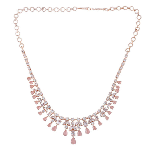 Jewellery Set for Women and Girls American Diamond Jewellery Set | Rose Gold Tone Tear Drop Designed Pink AD Necklace Set | Birthday Gift for girls and women Anniversary Gift for Wife