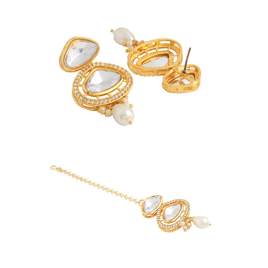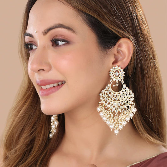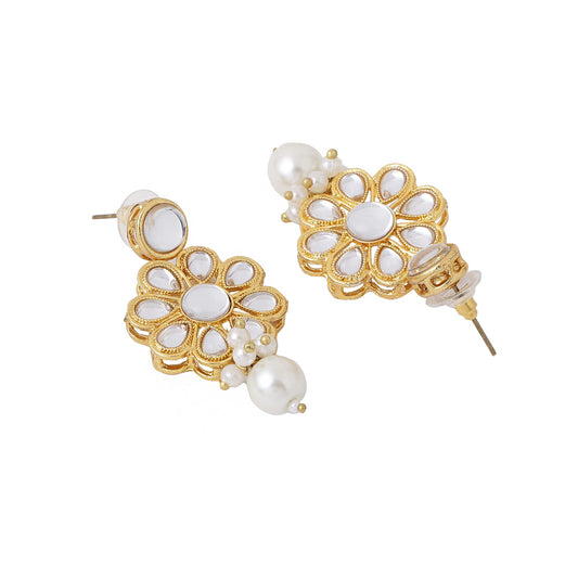 Jewellery Set for Women and Girls Kundan Necklace Set Gold Plated Kundan Studded White Beads Drop Choker Necklace Set | Birthday Gift for girls and women Anniversary Gift for Wife