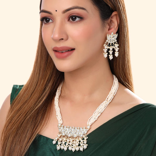 Jewellery Set for Women and Girls Kundan Necklace Set Gold Plated Kundan Studded White Beads Beaded Choker Necklace Set | Birthday Gift for girls and women Anniversary Gift for Wife