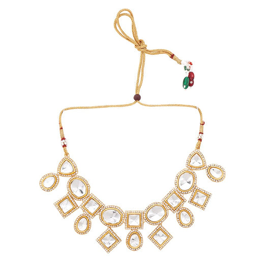 Jewellery Set for Women and Girls Un-Cut Kundan Necklace Set Gold Plated Kundan Choker Necklace Set | Birthday Gift for girls and women Anniversary Gift for Wife