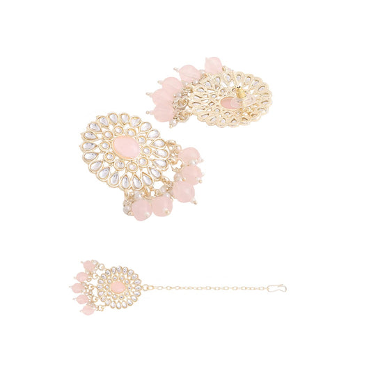Jewellery Set for Women and Girls Kundan Necklace Set Gold Plated Kundan Studded Pink Beads Drop Choker Necklace Set | Birthday Gift for girls and women Anniversary Gift for Wife