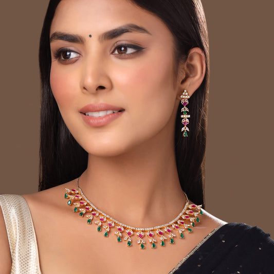 Jewellery Set for Women and Girls American Diamond Jewellery Set | Gold Plated Multicolor AD Necklace Set for Women | Birthday Gift for girls and women Anniversary Gift for Wife