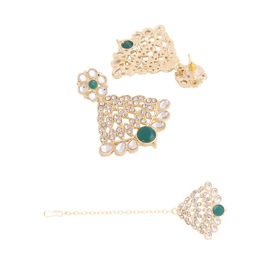 Jewellery Set for Women and Girls Kundan Necklace Set Gold Plated Kundan Studded Green Beads Drop Choker Necklace Set | Birthday Gift for girls and women Anniversary Gift for Wife