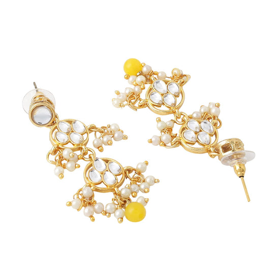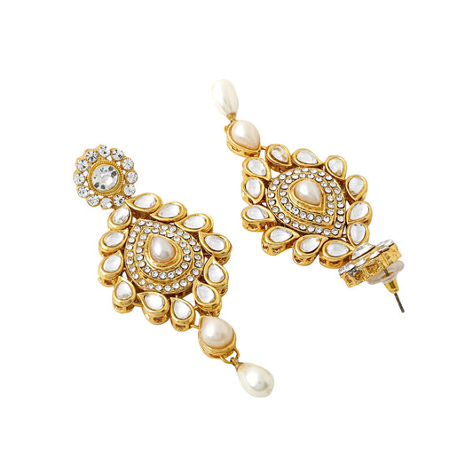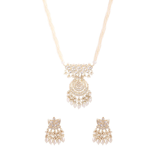 Jewellery Set for Women and Girls Kundan Necklace Set Gold Plated Kundan Studded White Beads Drop Necklace Set | Birthday Gift for girls and women Anniversary Gift for Wife