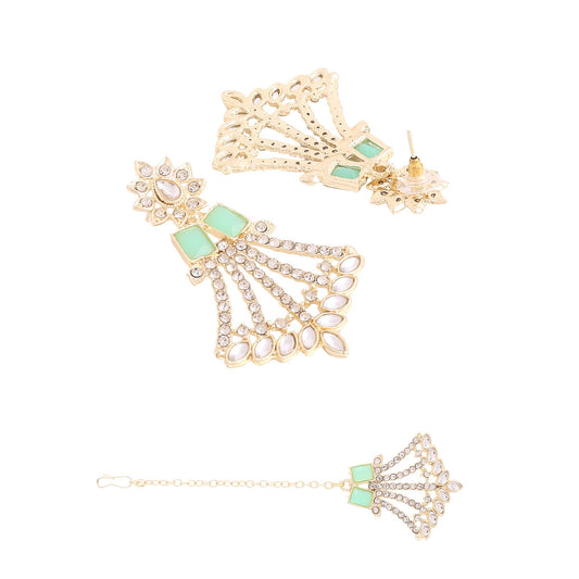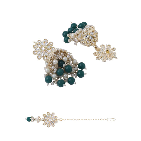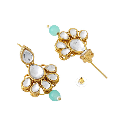 Jewellery Set for Women and Girls Kundan Necklace Set Gold Plated Kundan Studded Green Beads Drop Necklace Set | Birthday Gift for girls and women Anniversary Gift for Wife