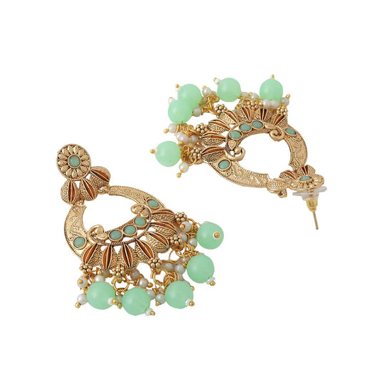Jewellery Set for Women and Girls Temple Jewellery Set for Women | Gold Plated Green Beads Drop Choker Necklace Set | Birthday Gift for girls and women Anniversary Gift for Wife
