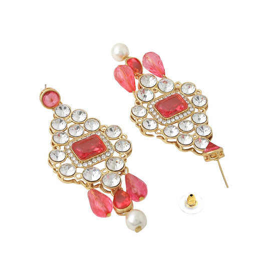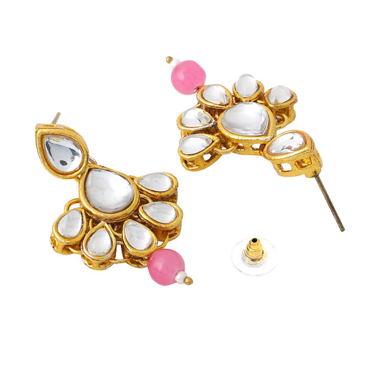 Jewellery Set for Women and Girls Kundan Necklace Set Gold Plated Kundan Studded Pink Pearl Drop Choker Necklace Set | Birthday Gift for girls and women Anniversary Gift for Wife
