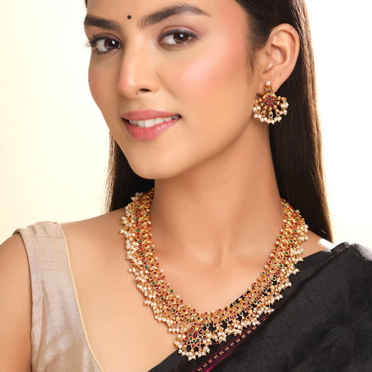 Jewellery Set for Women and Girls Temple Jewellery Set | Gold Plated Long Necklace Temple Jewellery Set | Birthday Gift for girls and women Anniversary Gift for Wife