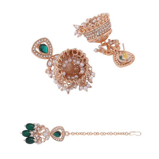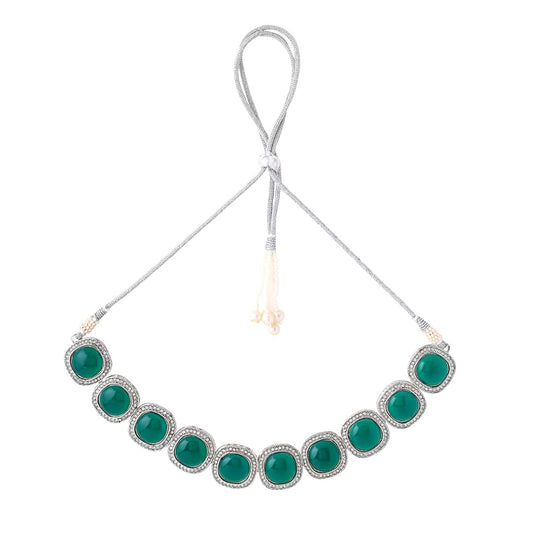 Jewellery Set for Women and Girls Kundan Necklace Set Gold Plated Kundan & Green Crystal Studded Choker Necklace Set | Birthday Gift for girls and women Anniversary Gift for Wife
