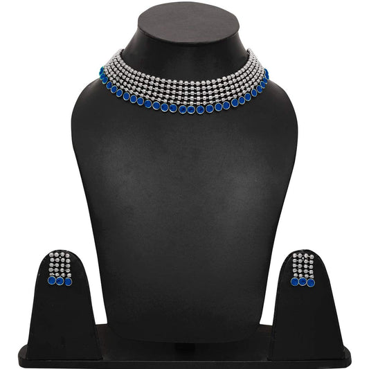 Jewellery Set for Women and Girls American Diamond Jewellery Set |Silver Tone Blue Crystal Drop AD Long Necklace Set | Birthday Gift for girls and women Anniversary Gift for Wife