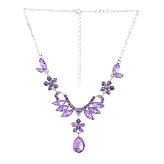 Jewellery Set For Women Floral Crystal Studded Silver Toned Designed Necklace Set For Women and Girls
