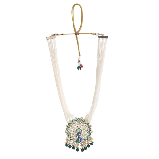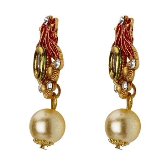 Exclusive Traditional Peacock Desaign Pearl Kundan Necklace with Drop Earrings for Women