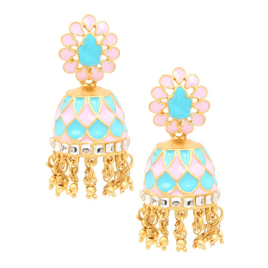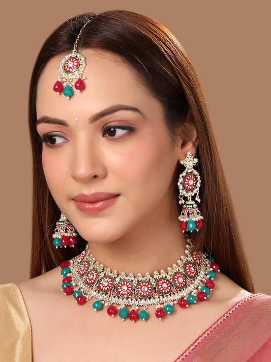 Ethnic Gold Plated Studded Kundan Meenakari Jewellery Set Traditional Choker Necklace Set for Women and Girls