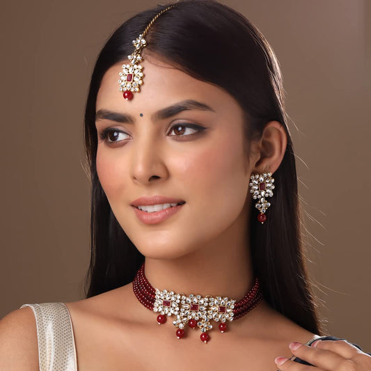 Jewellery Set for Women and Girls Kundan Necklace Set Gold Plated Kundan Studded Beads Beaded Necklace Set | Anniversary Gift for Wife
