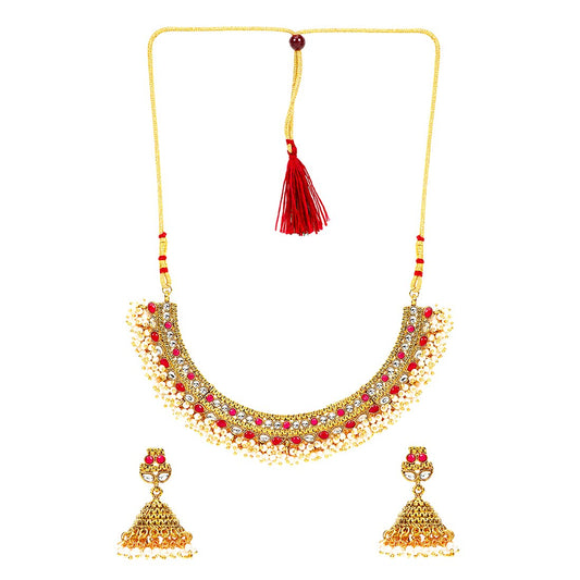 Jewellery Set for Women and Girls One Gram Gold Jewellery Set for Women | Gold Plated Bridal Choker Necklace Set | Birthday Gift for Girls & Women Anniversary Gift for Wife