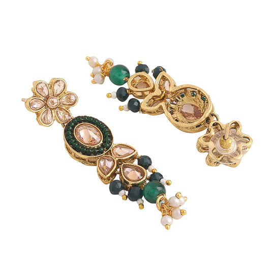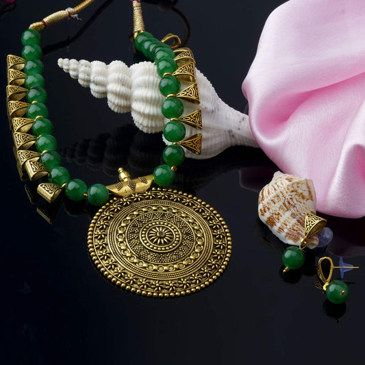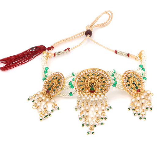 Ethnic Handcrafted Moti Multilayer Jewellery Set Gold Plated Traditional Peacock Choker Necklace Set for women & Girls (Green)