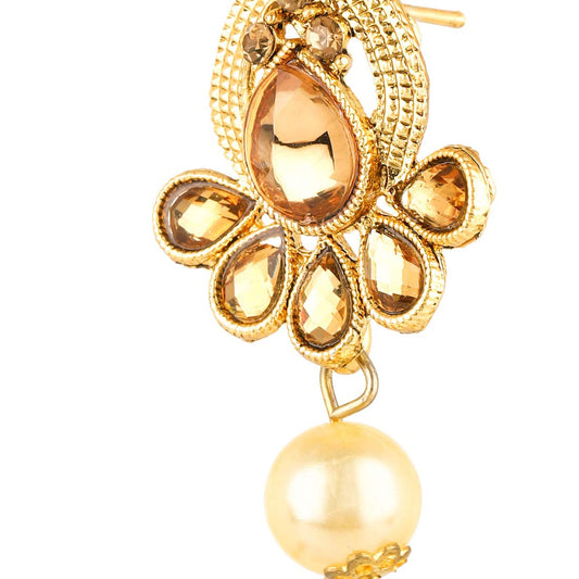 Gold Plated Traditional Flower Designer Studded pearl Choker Necklace, Earring & Maang Tikka Set Necklace set Necklace Jewellery Set For Women & Girls