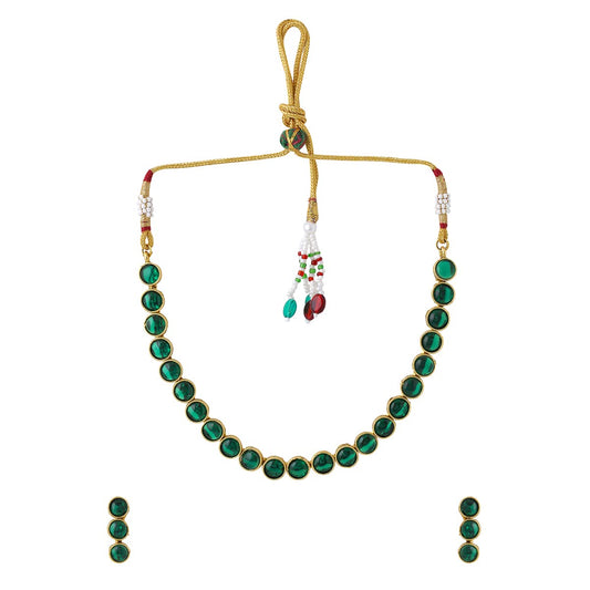 Jewellery Set for Women and Girls Stone Necklaces Set for Girls | Gold Plated Green Stone Studded Choker Necklace Set | Birthday Gift for girls and women Anniversary Gift for Wife
