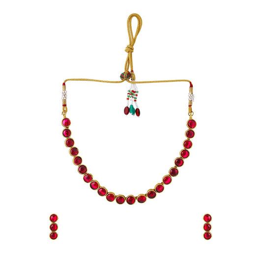 Jewellery Set for Women and Girls Stone Necklaces Set for Girls | Gold Plated Maroon Stone Studded Choker Necklace Set | Birthday Gift for girls and women Anniversary Gift for Wife