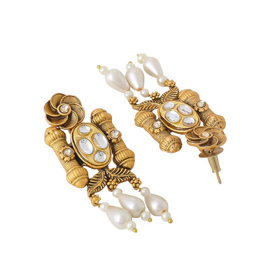 Jewellery Set for Women and Girls Traditional Kundan Necklaces Set | Gold Plated Moti Beads Beaded White Pearl Drop Kundan Set | Birthday Gift for girls & women Anniversary Gift for Wife