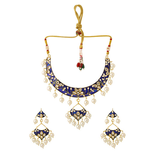 Jewellery Set for Women and Girls Kundan Necklace Set for Girls | Gold Plated Kundan Blue Meenakari Choker Necklace Set | Birthday Gift for girls and women Anniversary Gift for Wife
