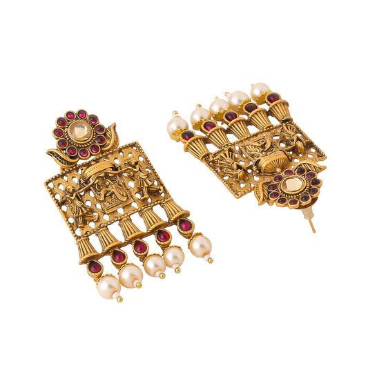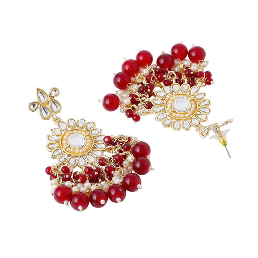Jewellery Set for Women and Girls Traditional Kundan Necklaces Set | Gold Plated Red Beads Drop Kundan Set | Birthday Gift for girls and women Anniversary Gift for Wife