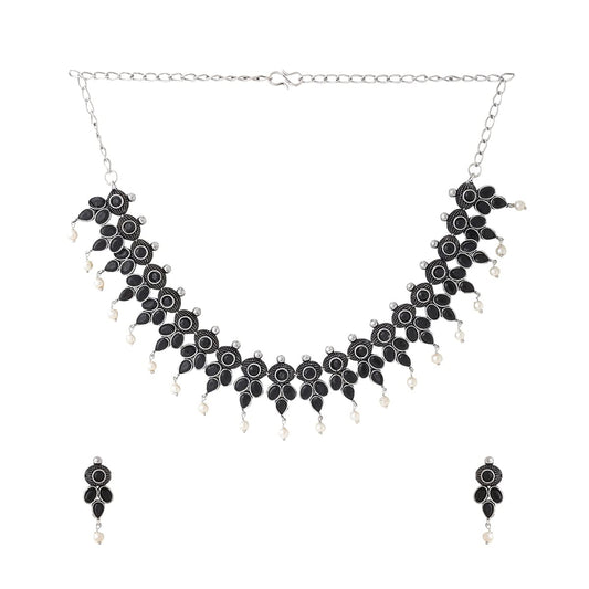 Jewellery Set for Women and Girls Traditional Silver Oxidised Jewellery Set | Black Stone Choker Necklace Set for Women | Birthday Gift For Girls and Women Anniversary Gift for Wife