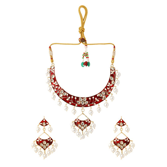 Jewellery Set for Women and Girls Kundan Necklace Set for Girls | Gold Plated Kundan Red Meenakari Choker Necklace Set | Birthday Gift for girls and women Anniversary Gift for Wife
