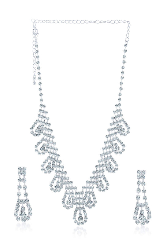 Exclusive Sparkling Crystals Designer Jewellery Set with Earrings Necklace Set for Women and Girls