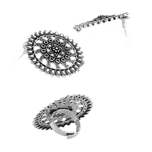 Jewellery Set for Women and Girls Traditional Silver Oxidised Jewellery Set Silver Necklace Set for Women | Oxidized Layered Necklace Set | Birthday Gift For Girls and Women Anniversary Gift for Wife