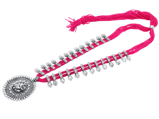 Jewellery Set for Women & Girls Traditional Silver Oxidised Jewellery Set Pink Necklace Set for Women | Dori Thread Antique Ganesha Ji Oxidized Necklace Set | Birthday Gift For Girls and Women Anniversary Gift for Wife