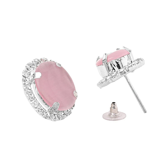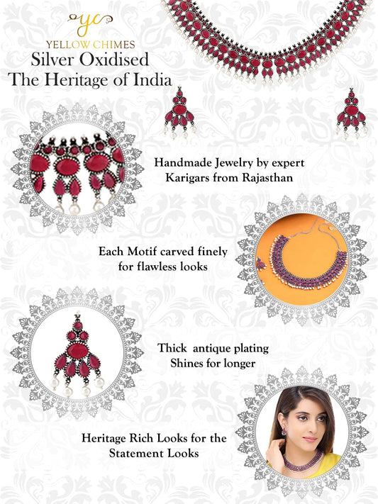 Jewellery Set for Women and Girls Traditional Silver Oxidised Jewellery Set Pink Choker Set | Studded Stone Choker Necklace Set for Women | Birthday Gift For Girls and Women Anniversary Gift for Wife