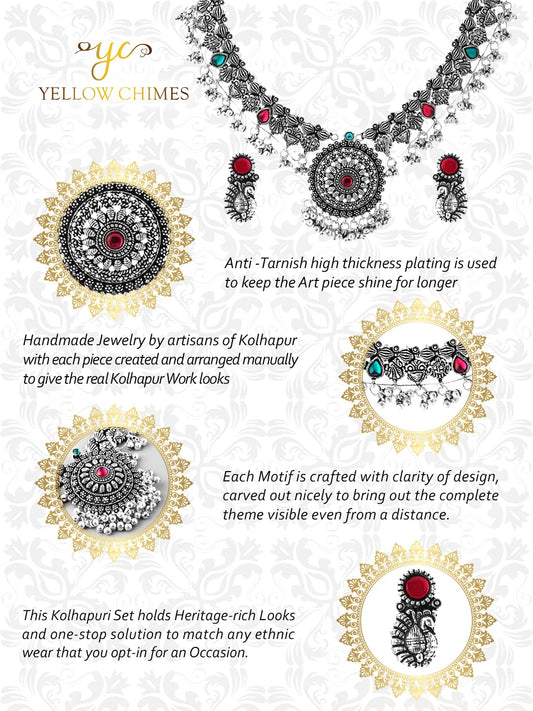 Oxidised Jewellery Set for Women Authentic Kolhapuri Work Handmade Silver Traitional Silver Oxidized Choker Necklace Sets for Women and Girls.