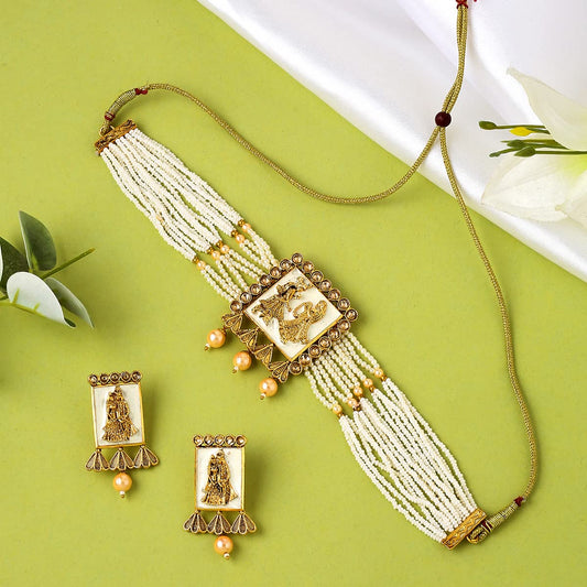 Jewellery Set for Women and Girls Traditional Beads Necklace Set for Women | Gold Plated Big Charm Choker Necklace Set | Birthday Gift for girls and women Anniversary Gift for Wife