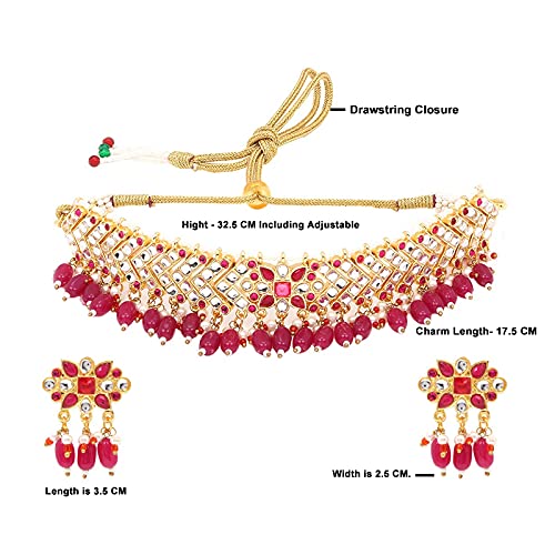 Ethnic Handcrafted Pink Kundan Jewellery Set Gold Plated Traditional Choker Necklace Set for women & Girls (Pink)