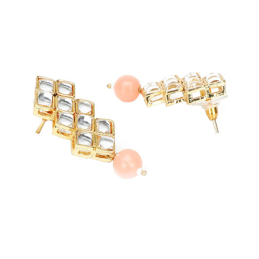 Kundan Jewellery Set for Women Gold Plated Kundan Jewellery Set Traditional Peach Choker Necklace Set for Women and Girls.