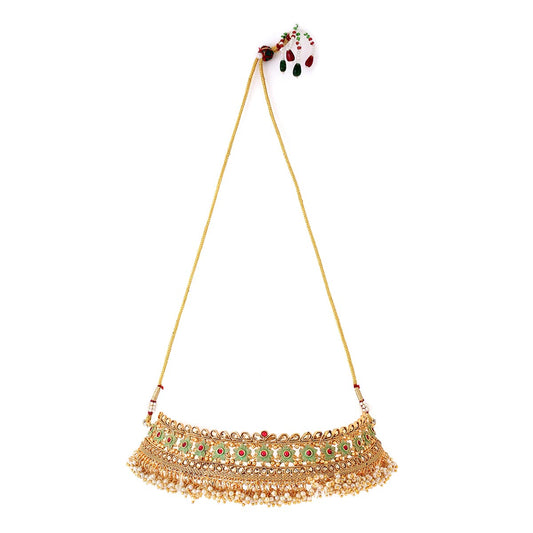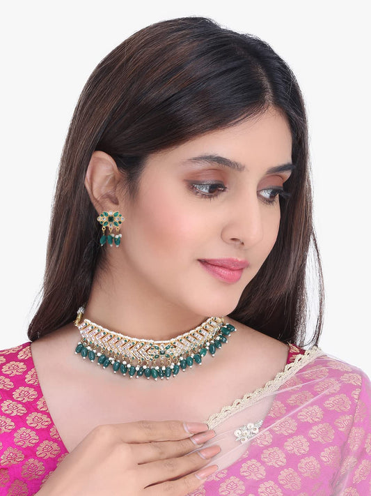 Ethnic Handcrafted Kundan Jewellery Set Gold Plated Traditional Choker Necklace Set for women & Girls (Green Golden)