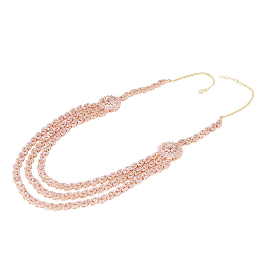 Luxurious Looks AD/American Diamond Studded 18K Rose Gold Plated Rani Haar MultiLayer Necklace Set Jewellery Set for Women & Girls